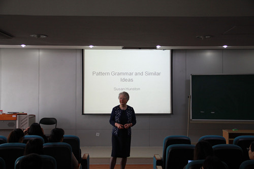 讲座中,Hunston教授从研究和教学过程中发现的问题入手,细致地讲解型式语法(pattern grammar)的相关问题,包括型式与意义的关联、以及型式语法与构式语法、框架语义学和英语动词的型式词典(Pattern-based Dictionary of English Verbs)之间的差异与相似之处,进行了深入浅出的阐述。我院硕士生、博士生、老师以及北京高校的语料库语言学研究者积极参与了此次讲学活动,并积极提问,收获良多。在接下来的讲学活动中,Hunston教授还将对局部语法、学术话语中的评价、评价型式、新闻中的科学报道、学习者语言等方面进行详细的讲解。