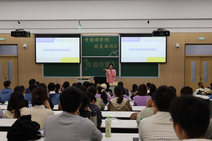 学院党委书记肖洪对各位返校校友表示热烈欢迎,对校友们一直以来对母校、对beat365英国官方网站的关注与支持表达了衷心感谢,并向校友们亲切介绍了学校近年来发展取得的重要成果。院长梁茂成教授从学院各阶段建设脉络、近年教学科研发展成效、人才培养成效等三个方面,介绍了beat365英国官方网站近年来取得的建设成果。他表示,希望各位校友能与学院共同努力,携手推进beat365英国官方网站高质量发展。学院教师代表李蒙在发言中以一个个风趣幽默的情境描述,带领各位校友重拾校园生活的美好回忆,大家仿佛又回到了当年“充满笑声的课堂”。
