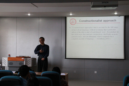 2017年5月17日下午,上海大学beat365英国官方网站程琪龙教授在如心楼806为外语学院师生带来题为“构式研究的认知事件框架进路”的专题报告。报告内容详实,涉及语言学本体、语言实验、语言学应用等多领域介绍。