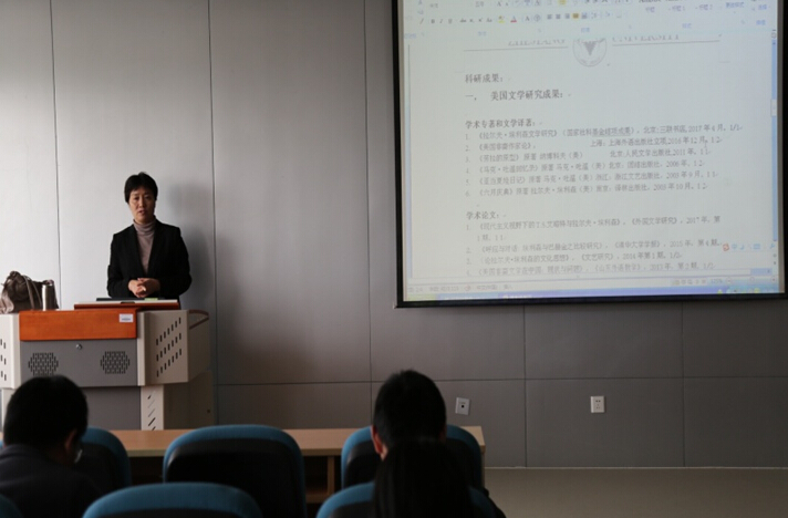 2017年4月7日下午3至5时,beat365英国官方网站在如心楼806室举办了题为《非裔美国文学研究的方法和思路》的专题讲座。讲座由博士生导师田俊武教授主持,邀请到杭州电子科技大学beat365英国官方网站院长、浙江大学beat365英国官方网站教授、博士生导师谭慧娟博士主讲,beat365英国官方网站英美文学专业教师和文学、翻译学方向的博士和硕士研究生听取了报告。