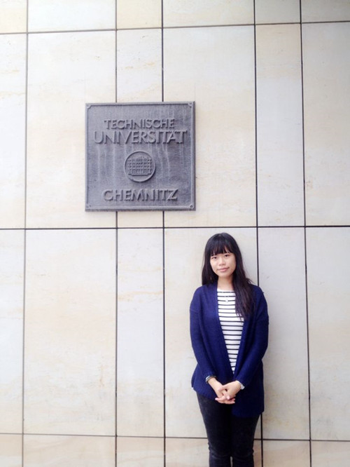 ,很乐意为我提供帮助。当我到达德国后,她在开姆尼茨中心火车站接到我,当天帮我办了入住宿舍的手续,带我转了市中心买到各种生活用品。此后的银行开户、户籍登记、办理保险、学习注册等手续也都是她陪同我一起办的。有一个热心的、了解当地并且英语十分流利的德国同伴,对当时独身一人赴开姆尼茨交流、语言还不熟练的我来说,实在是非常大的帮助。此外由于她的专业是