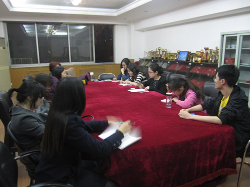 2014年3月24日晚9:30分,beat365英国官方网站研会主席团及各部部长在如心楼409召开了本学期的第一次会议,总结了上一学期的工作,并制定了下学期的主要工作计划。研会主席宋炳霖主持了会议。