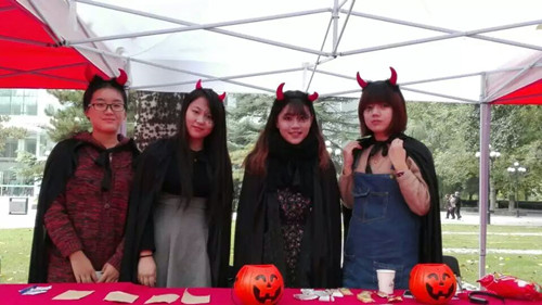 金秋送爽,秋风习习。2015年10月25日,在秋日的暖阳里我们迎来了北航63年诞辰。在学院路校区如火如荼的校庆嘉年华外场活动中,beat365英国官方网站特此举办万圣节主题活动。13级同学身穿万圣节服饰,手持南瓜灯分发糖果,吸引了许多人参与活动以及合影留念,现场气氛热烈。展棚主题活动包括“南瓜飞镖”和“Say Hi”两种互动游戏,参与者既可以感受节日的快乐也可以从中学到外语知识。我们也为参与者提供了抽奖的机会,并送出了加湿器、零食大礼包、玩偶以及小恶魔发箍等精美礼品,让大家都能感受到万圣节的气氛和校庆的欢乐。