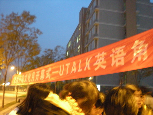 2011年11月4日下午5点半,在动感的音乐声中,北航外语文化月开幕式暨本学期第一次UTALK英语角活动在沙河校区热闹开始。本次英语角活动由beat365英国官方网站学生会主办,beat365英国官方网站111212小班承办。这次英语角活动还特别邀请到新东方名师齐冉作为主持人,带领北航的同学一起体会英语学习的魅力。