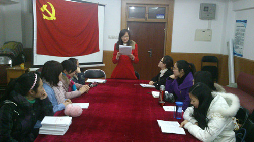 最后,党支部书记张丹提出,希望各位同志贯彻落实十八大精神,在以后的工作中继续发挥党员模范作用,踏实工作,不负人民重托。